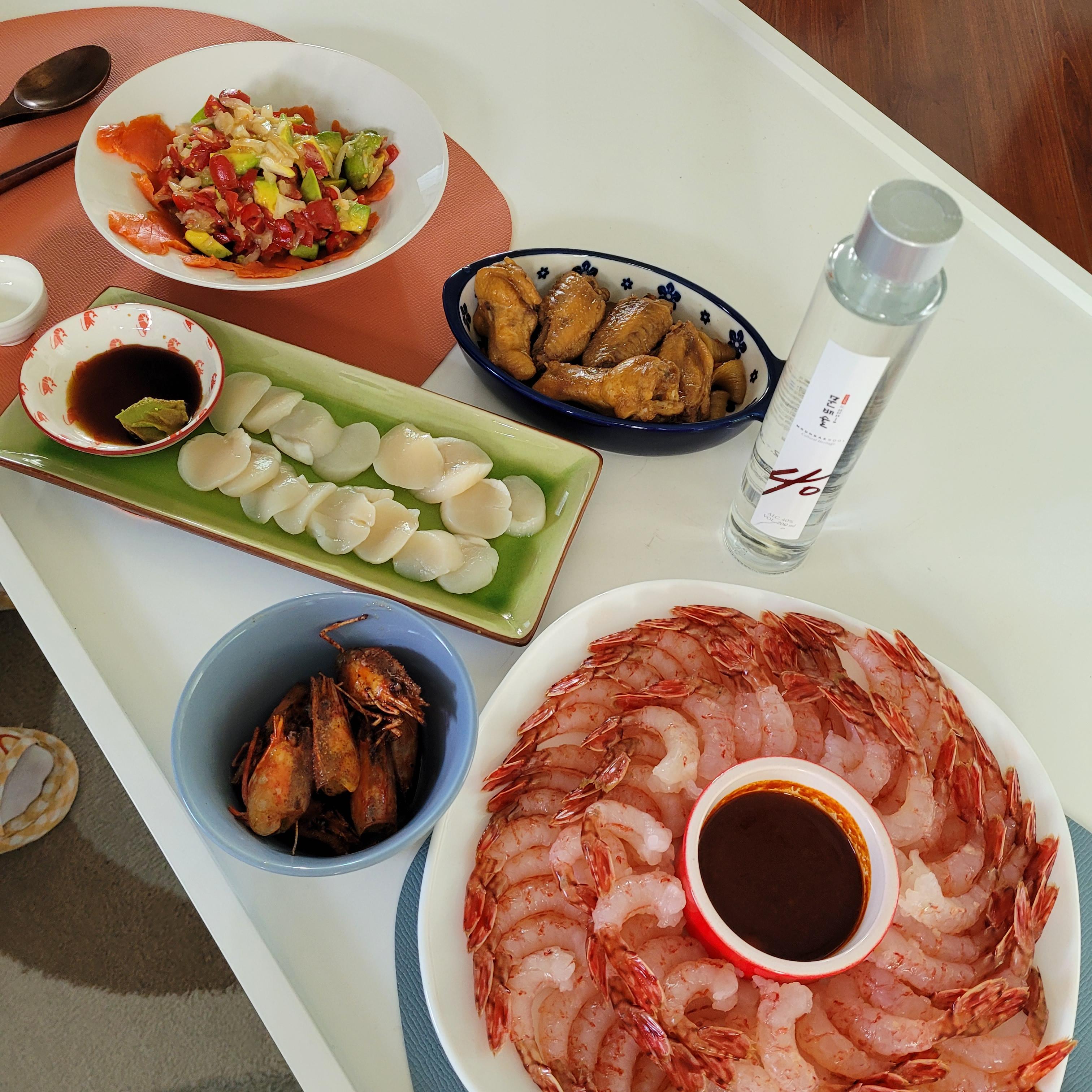 그리고 뭐 그 외에 치킨윙, 관자, 아보카도 샐러드 등을